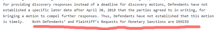 The judge then denied the motion and imposed sanctions of $790 for bringing an untimely motion.