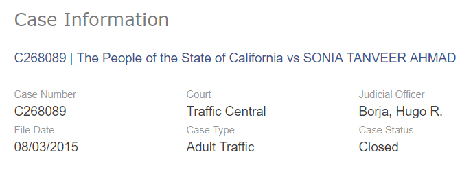 Note: Many people can have the same name. It is possible that a different Sonia Ahmad is the defendant in these cases: